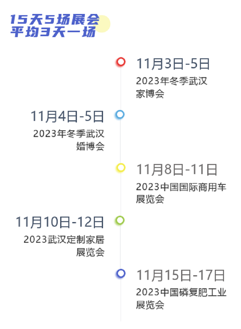 11月15日,2023中國磷復(fù)肥工業(yè)展覽會在武漢國際博覽中心拉開帷幕,兩周內(nèi)先后有5場行業(yè)展覽在國博中心舉辦,平均每3天承辦1場展會。