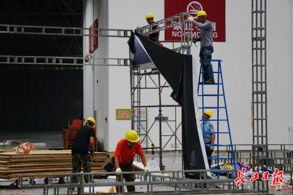 4月底,國博曾在一周內(nèi)連續(xù)承接3個大型展會。一般情況下,開展前都有2-7天不等的布展期。但在那個星期,布展時間被“極限壓縮”至1個晚上,上一場展會撤展后,下一場立刻進場,連夜布展。曾昊組織人員提前用3種顏色的線,在地上畫出不同展會的展位分布圖?!耙贿叢鹨贿厹?zhǔn)備,已經(jīng)成了常有的事?!痹徽f。