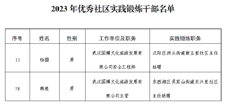 新城國(guó)博公司選派的5名干部中,韓根、楊圓2位同志被評(píng)選為“市委組織部2023年優(yōu)秀社區(qū)實(shí)踐鍛煉干部”。
